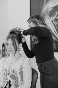 Your stylist may recommend washing your hair the morning before the rehearsal event and avoiding heavy styling products overnight so the hair remains flexible for styling the following day.